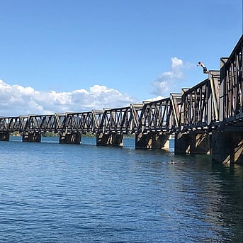 To tell the story of Venture Centre and its purpose in a single visual metaphor, it was natural for us to reach out to our local creative Bay of Plenty community. Kalou Koefoed has been part of the Venture Centre story since its launch. In May 2014, she helped organise our launch event at Tauranga Art Gallery – Toi Tauranga. We are grateful she accepted the commission and lent us her image of Tauranga City's own railway bridge for our home page. It is this bridge which connected a very small, rural, beachside town to what has since become the biggest port in Aotearoa. An apt symbol of journeying entrepreneurially into the future.
